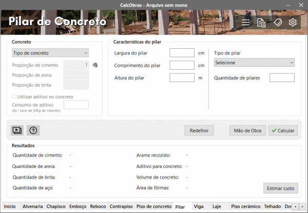 - Quantidade de pilares – o número de pilares com as mesmas características fornecidas anteriormente.