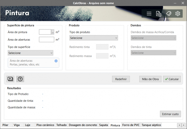 - Área de pintura - somatório das áreas (em m²) a serem pintadas;