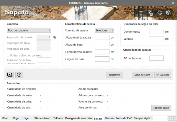 - Nº de sapatas - informe a quantidade de sapatas a serem calculadas com as mesmas características.